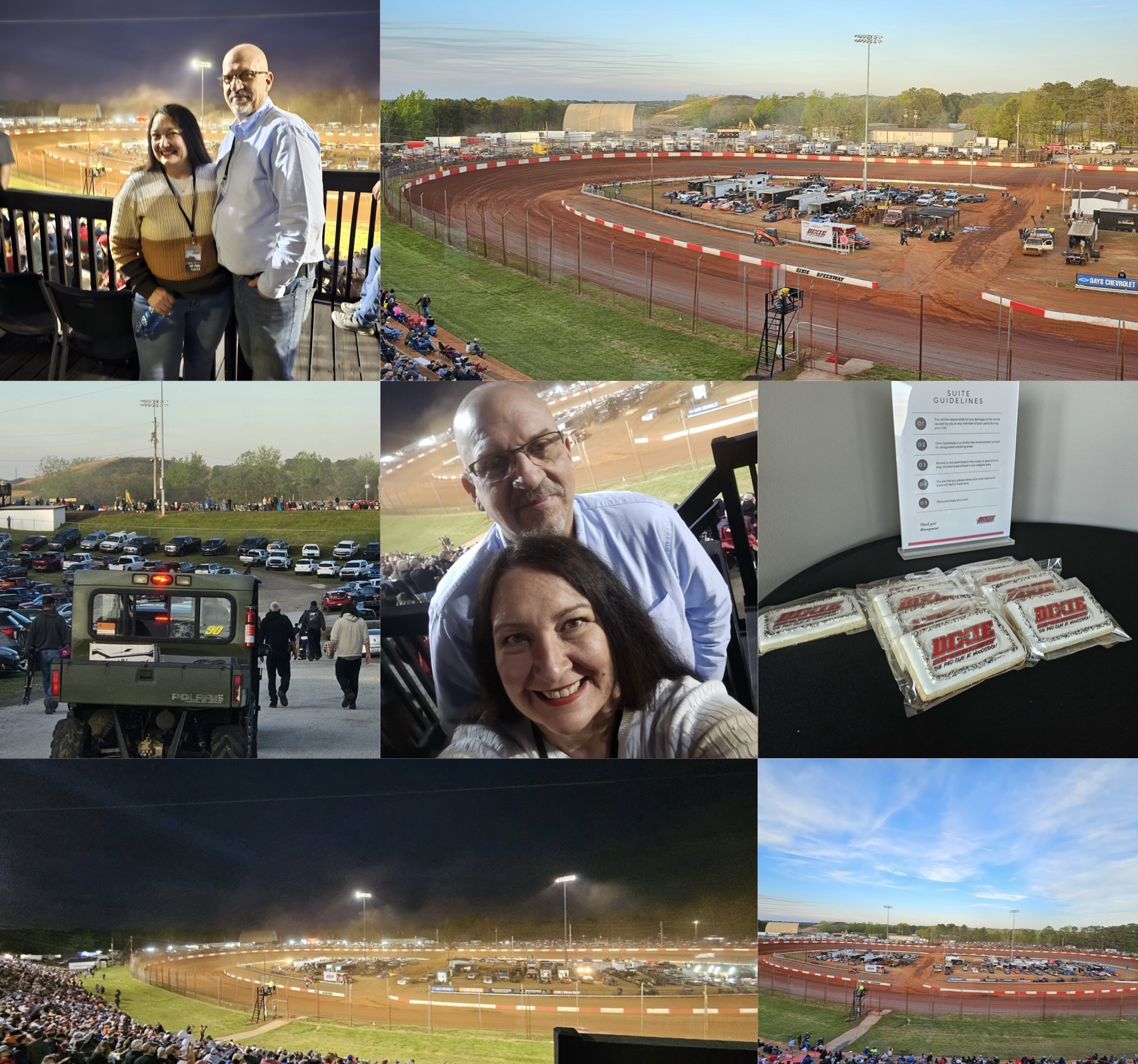 Lori and David were invited to the races at Dixie Speedway where they had VIP passes! They were able to park in a special spot, sat in the boxes and also were able to get food and drinks brought to them. They said it was a great experience and had so much fun!